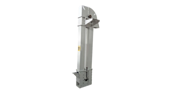 The elevator consists of a series of buckets attached to one or two heavy-duty chains, which circulate over sprockets at the top (head) and bottom (tail) sections. Material is loaded into the buckets at the base and lifted vertically to the discharge point, where it is automatically discharged. The use of chains instead of belts provides higher tensile strength, durability, and resistance to high temperatures and abrasive materials.